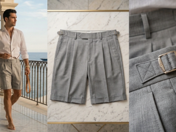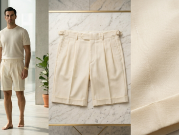 Short in lino irlandese color sabbia, caratterizzati da una struttura leggermente più definita ma sempre fluida. Ispirati ai paesaggi naturali e alla luce mediterranea, rappresentano un equilibrio perfetto tra materia e forma.