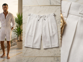 Short in lino extra fine, leggeri e dinamici. Pensati per esprimere movimento e libertà, mantengono un’eleganza controllata grazie alla costruzione sartoriale e alla palette sofisticata.