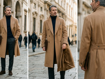 A differenza dei cappotti tradizionali, che possono risultare scomodi, le maniche ergonomiche sono tagliate con una leggera curvatura in avanti e presentano inserti sotto le ascelle. Questo garantisce che la silhouette strutturata non comprometta la mobilità, un richiamo alla "forza raffinata" necessaria per uno stile di vita attivo e intellettuale.