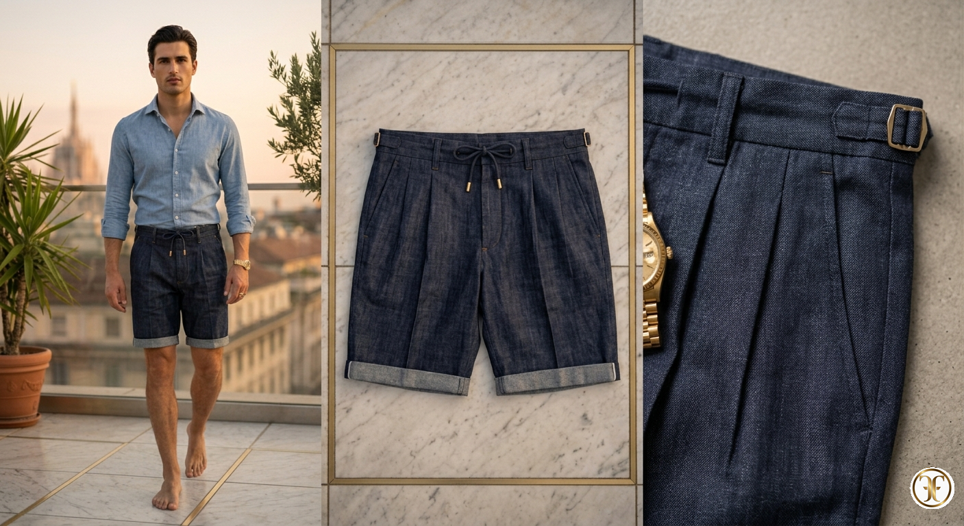 Questa proposta della Maison Fasano ridefinisce il denim per l'ora del crepuscolo, spogliandolo della sua anima casual per elevarlo a pezzo sartoriale da sera. Il modello “Notte Giapponese” fonde l'estetica metropolitana con la nobiltà del Selvedge Denim nero, creando un capo monolitico che cattura l'eleganza dello skyline urbano.