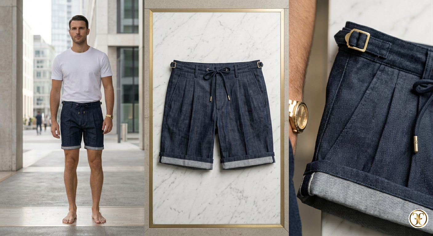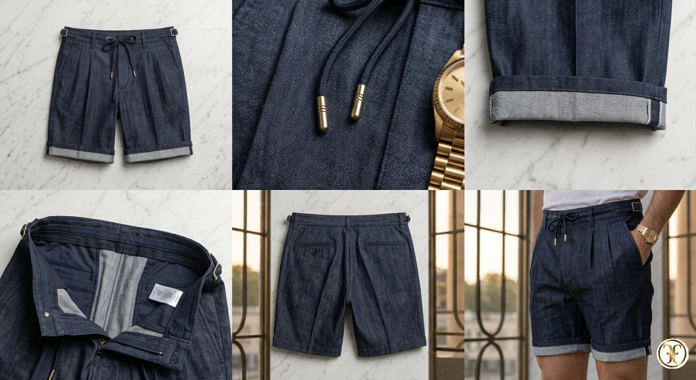 Questa proposta della Maison Fasano segna l'ingresso del denim nel guardaroba del lusso assoluto. Il modello “Kuro Indigo” non è un semplice short in jeans, ma un omaggio alla cultura tessile giapponese, dove la materia grezza viene elevata a forma d’arte attraverso una costruzione architettonica e rigorosa.