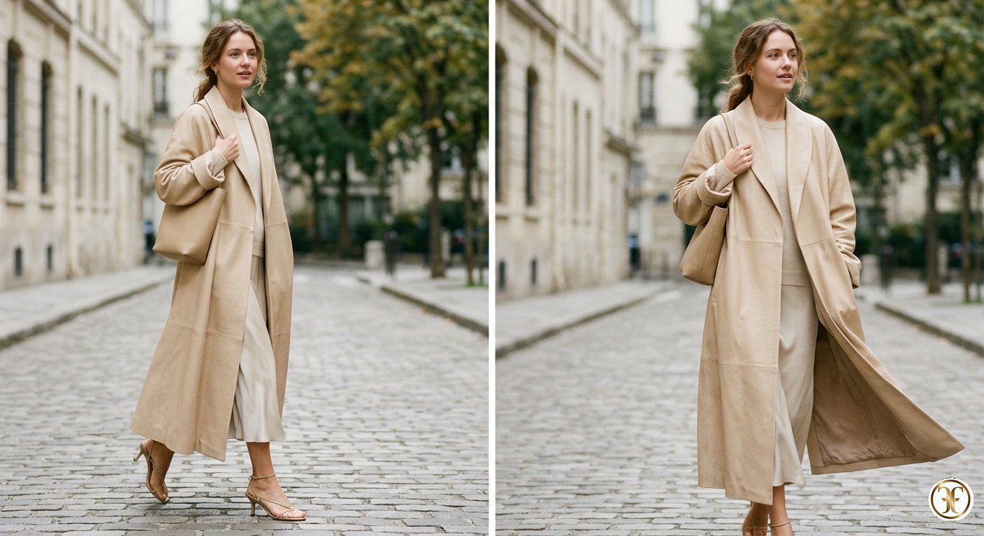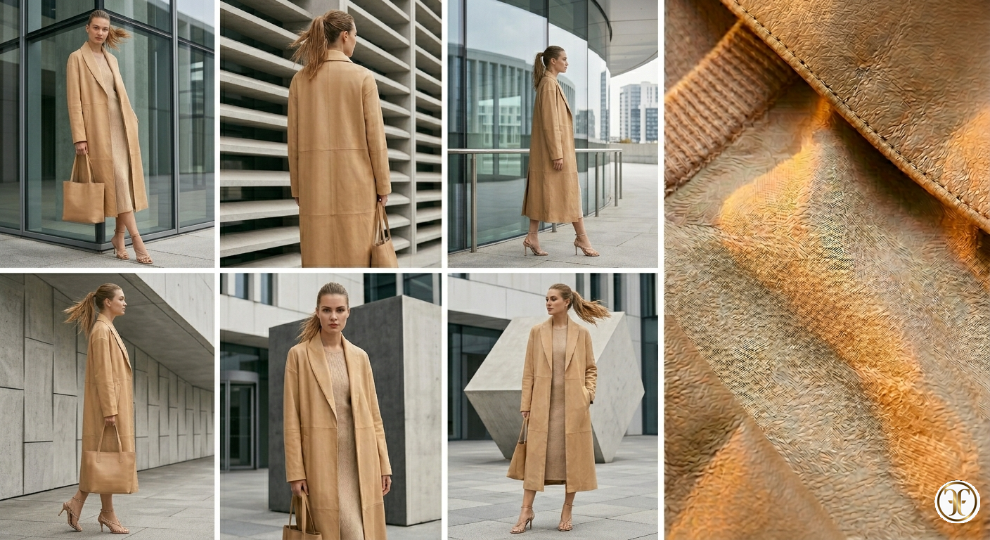 "Il modello Faylora è il nostro tributo alla luce solida. Maison Fasano ha voluto trasformare la nappa d'agnello in un elemento di pura luminosità, capace di fluire come l'oro liquido. È il lusso per la donna che cerca una protezione che sia anche un'emanazione di grazia, un cappotto che non nasconde, ma riflette la brillantezza interiore. Faylora non è pelle: è luce champagne indossabile."