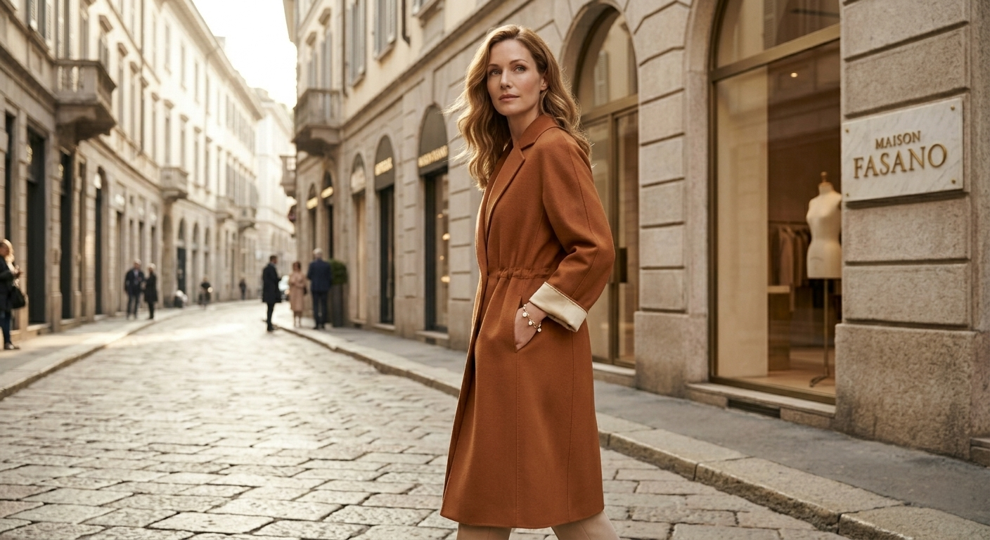 “La semplicità è l’ultima sofisticazione. Il cappotto ‘Luce’ Fasano trasforma il calore in bagliore, offrendo un’eleganza che non ha bisogno di spiegazioni.”