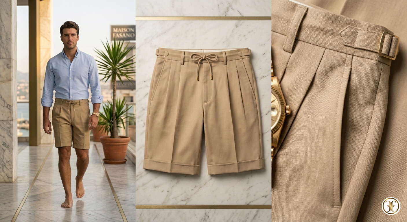 Questa proposta della Maison Fasano interpreta il dinamismo della metropoli estiva attraverso una lente di assoluta sofisticatezza. Il modello “Metropoli Khaki” trasforma il concetto di short utility in un pezzo di design urbano, dove la robustezza del cotone Pima incontra la nobilitazione della mercerizzazione per un risultato che è, allo stesso tempo, tecnico e lussuoso.