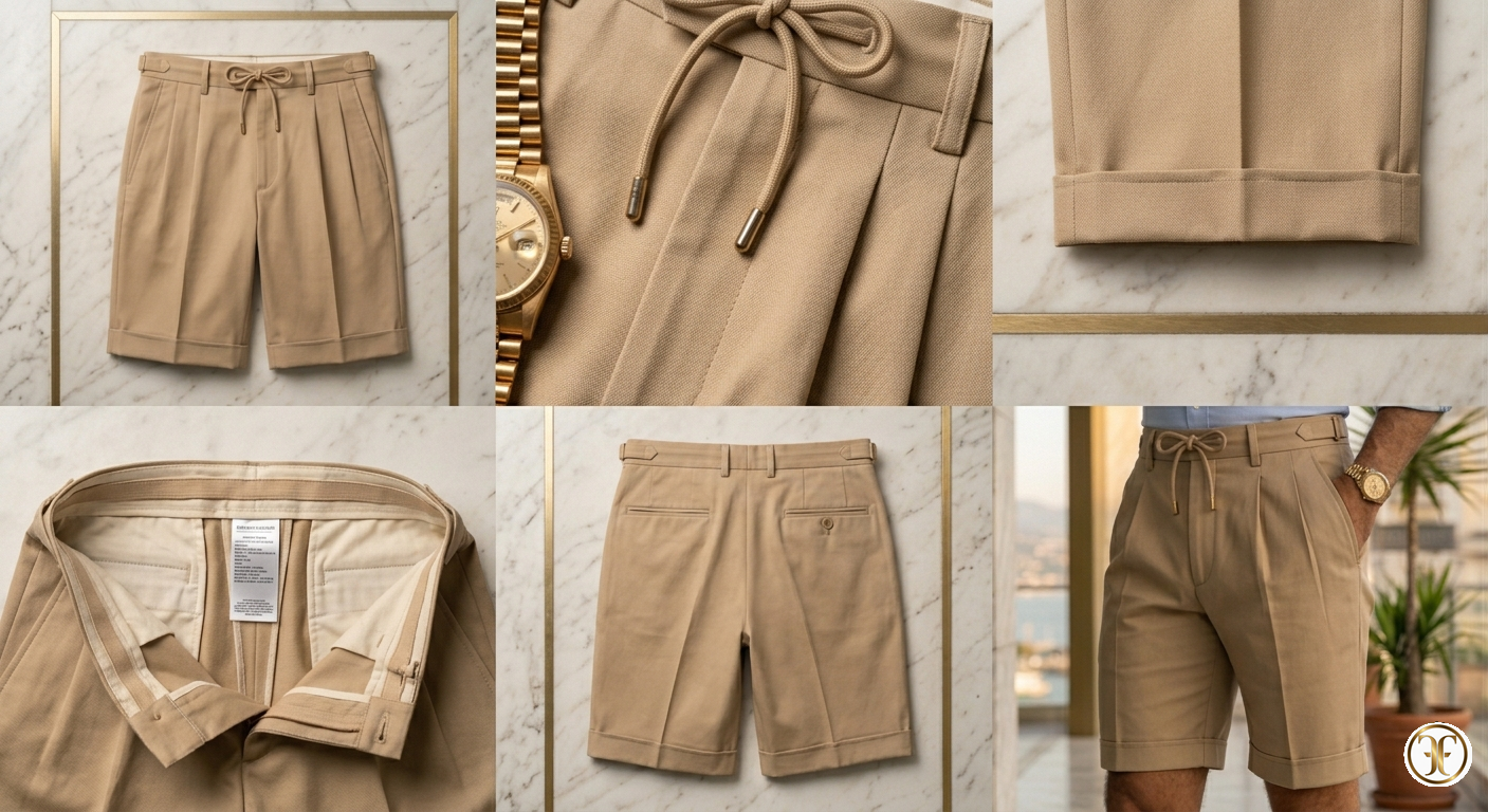 Sophisticated Urban Cut: La vestibilità è calibrata per l'uomo dinamico: una gamba asciutta ma non aderente, studiata per mantenere la piega sartoriale. La struttura del bacino è rinforzata internamente per evitare cedimenti, garantendo che lo short rimanga "in forma" dal mattino al cocktail serale.