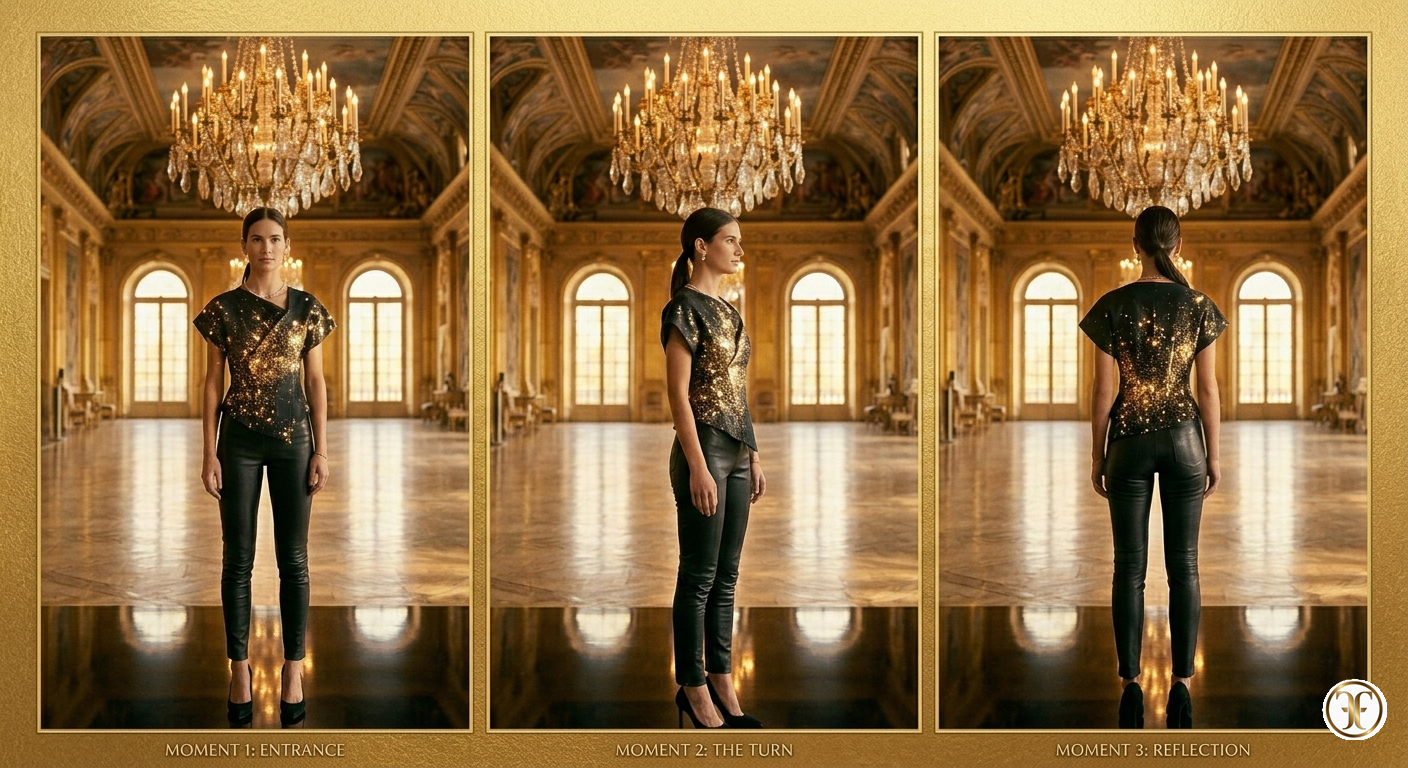Luminosità Organica: La finitura superficiale non è un riflesso artificiale, ma una brillantezza profonda che enfatizza la fluidità del materiale sotto le luci soffuse, donando alla silhouette una tridimensionalità quasi liquida.