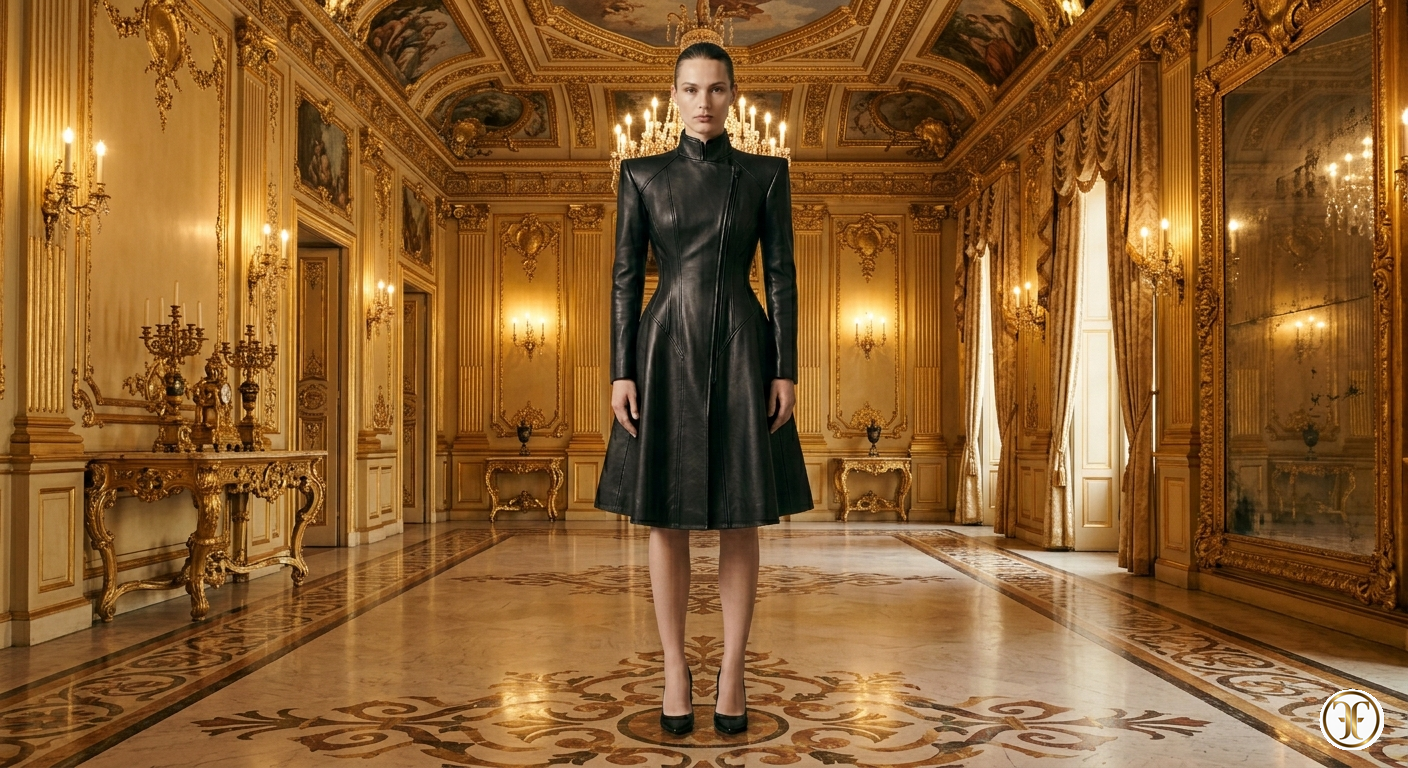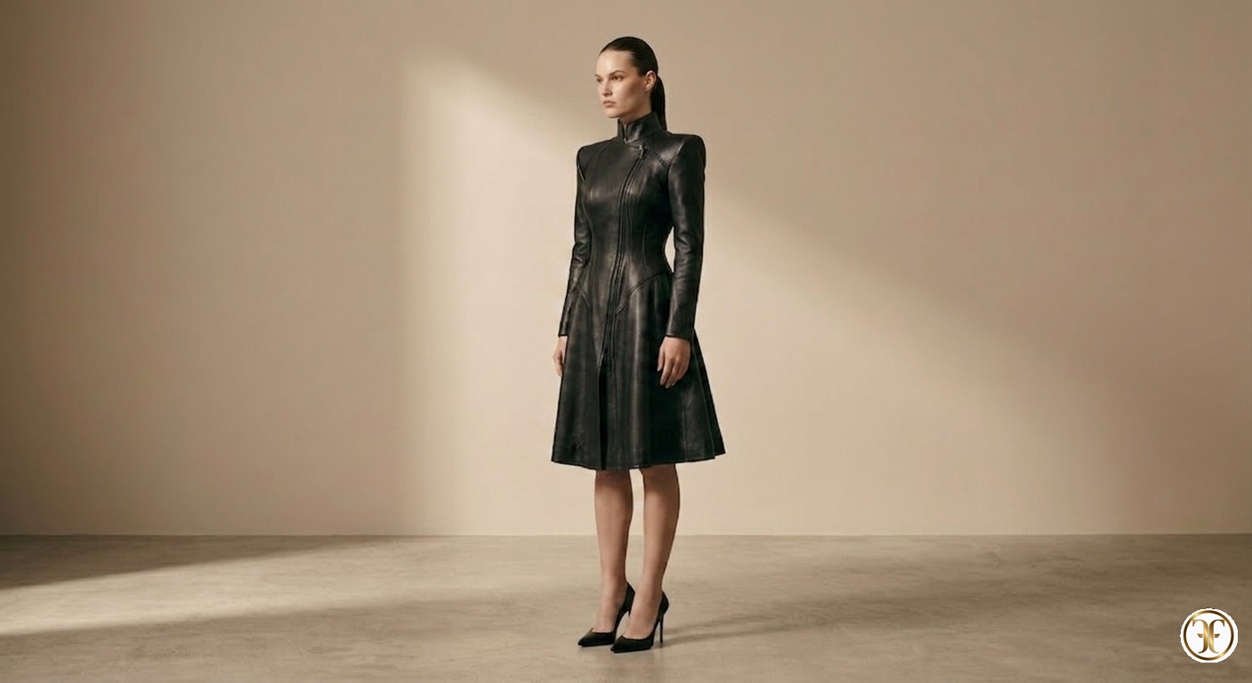 Questa creazione della Maison Fasano rappresenta l’apice del potere sartoriale applicato alla pelle. Il modello Osmèra non è un semplice capospalla, ma un monolite di eleganza scultorea: un pezzo monumentale che fonde il rigore del design architettonico con una sensualità femminile radicale e imperturbabile.