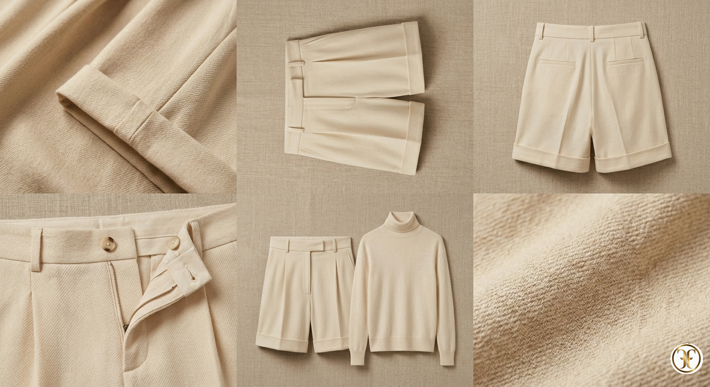 Short femminile in vicuña a trama morbida con seta Mulberry fluida, progettato per un comfort assoluto e una leggerezza quasi impalpabile. Il capo si muove naturalmente con il corpo, creando un effetto seconda pelle di lusso estremo.