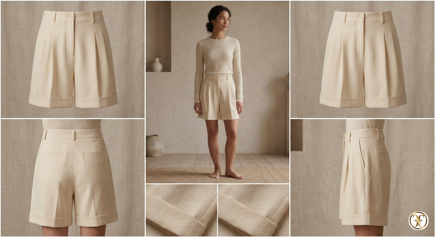 Short femminile in vicuña a trama morbida con seta Mulberry fluida, progettato per un comfort assoluto e una leggerezza quasi impalpabile. Il capo si muove naturalmente con il corpo, creando un effetto seconda pelle di lusso estremo.